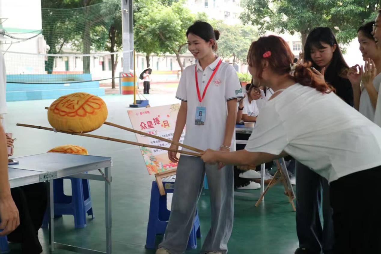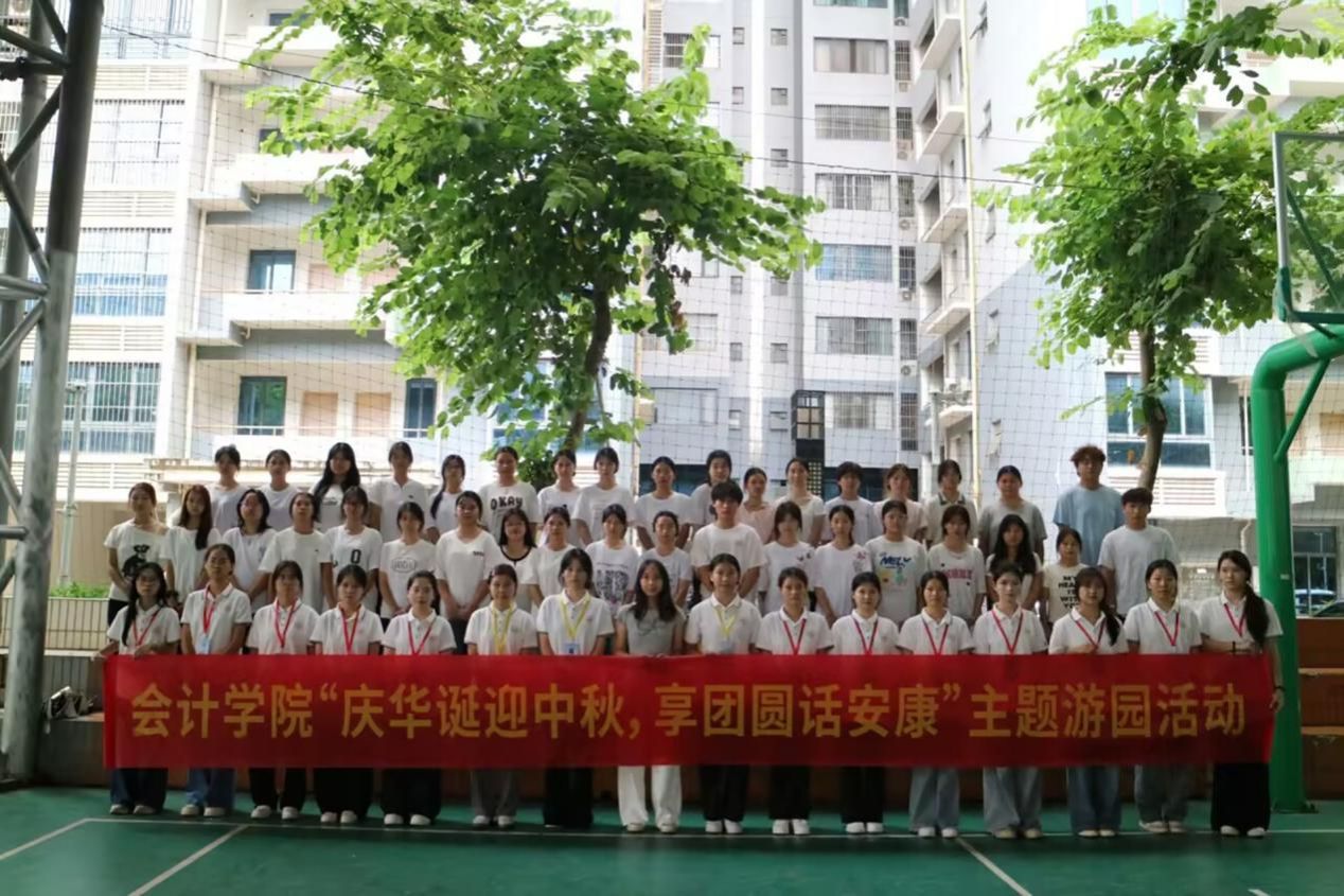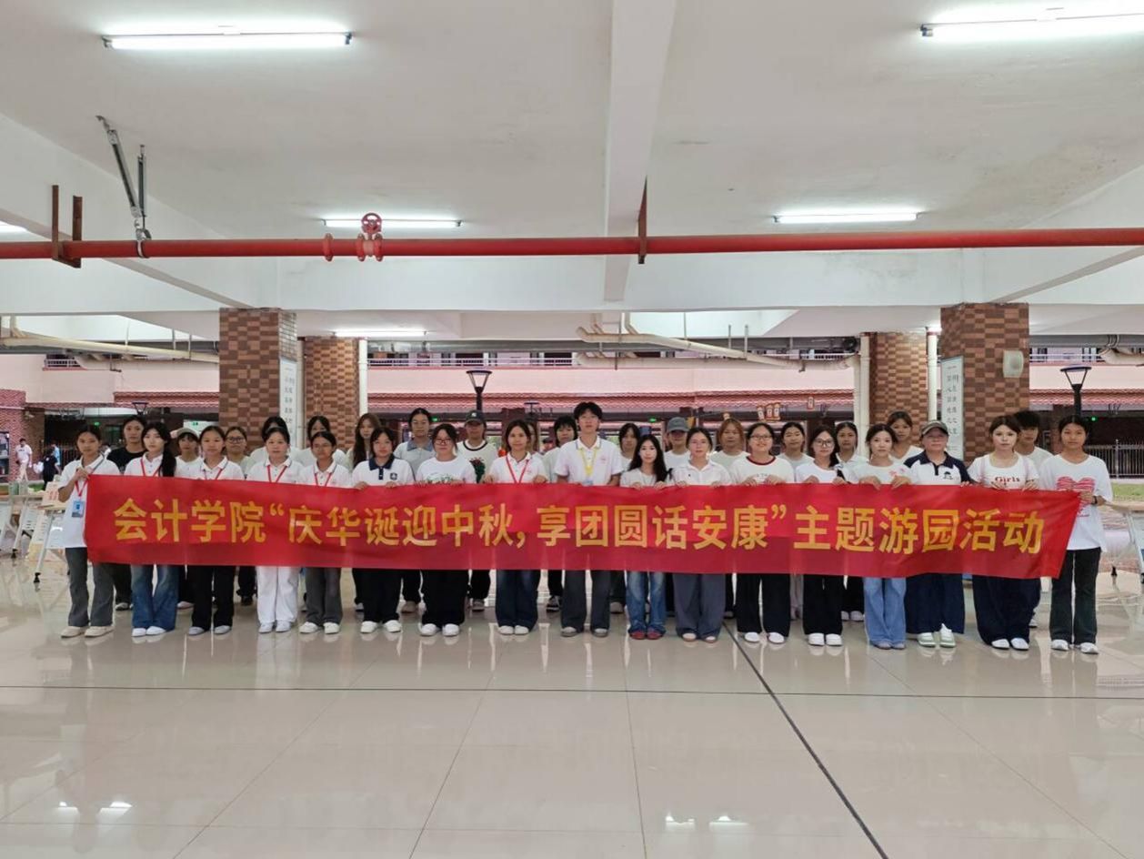 为传承弘扬中华优秀传统文化,厚植师生家国情怀,搭建同学间交流互动的优质平台,会计学院于2025年9月28日,分别在中尧校区风雨球场、武鸣校区B14架空层同步开展“庆华诞迎中秋,享团圆话安康”主题游园活动。会计学院部分教师及2024、2025级全体学生参与此次活动。