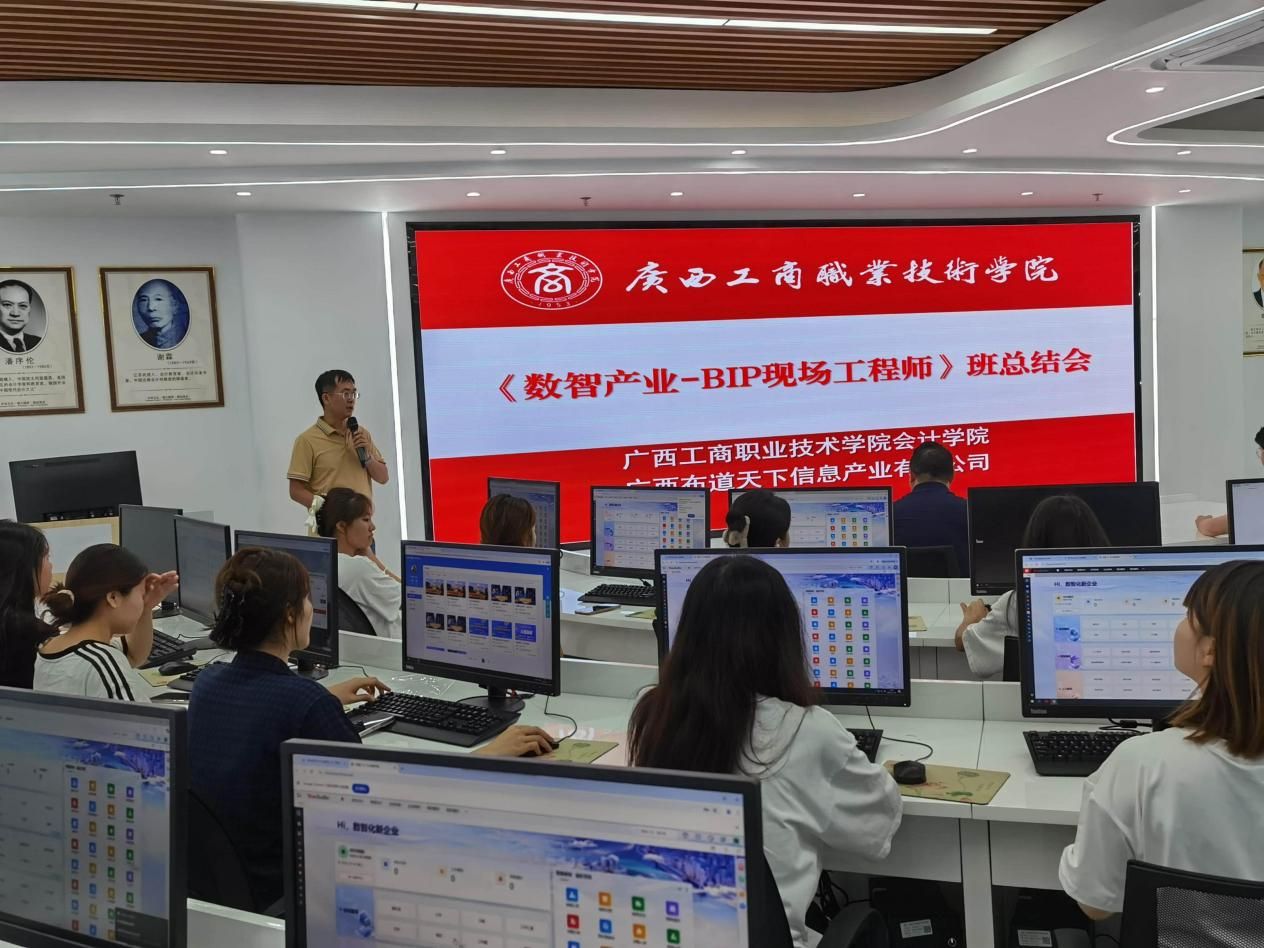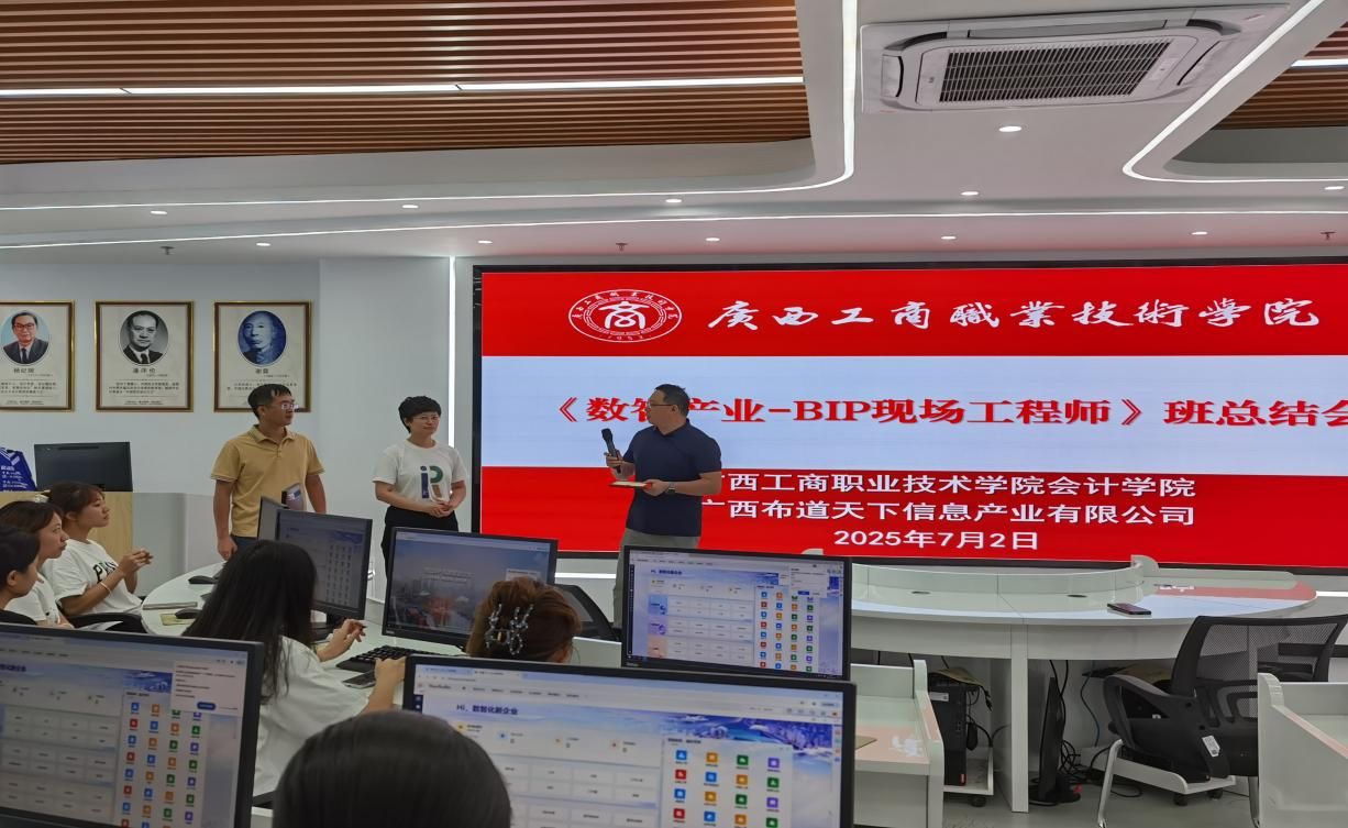 7月2日下午,会计学院在A5-317教室举行2025年《数智产业-BIP现场工程师班》总结会。会计学院会计教研室主任赵冉、会计学院会计信息管理专业带头人余伟、广西布道天下信息产业有限公司技术总监张凌坤、企业导师吴泓以及《数智产业-BIP现场工程师班》全体学生参加会议,本次会议由会计学院余伟主持。