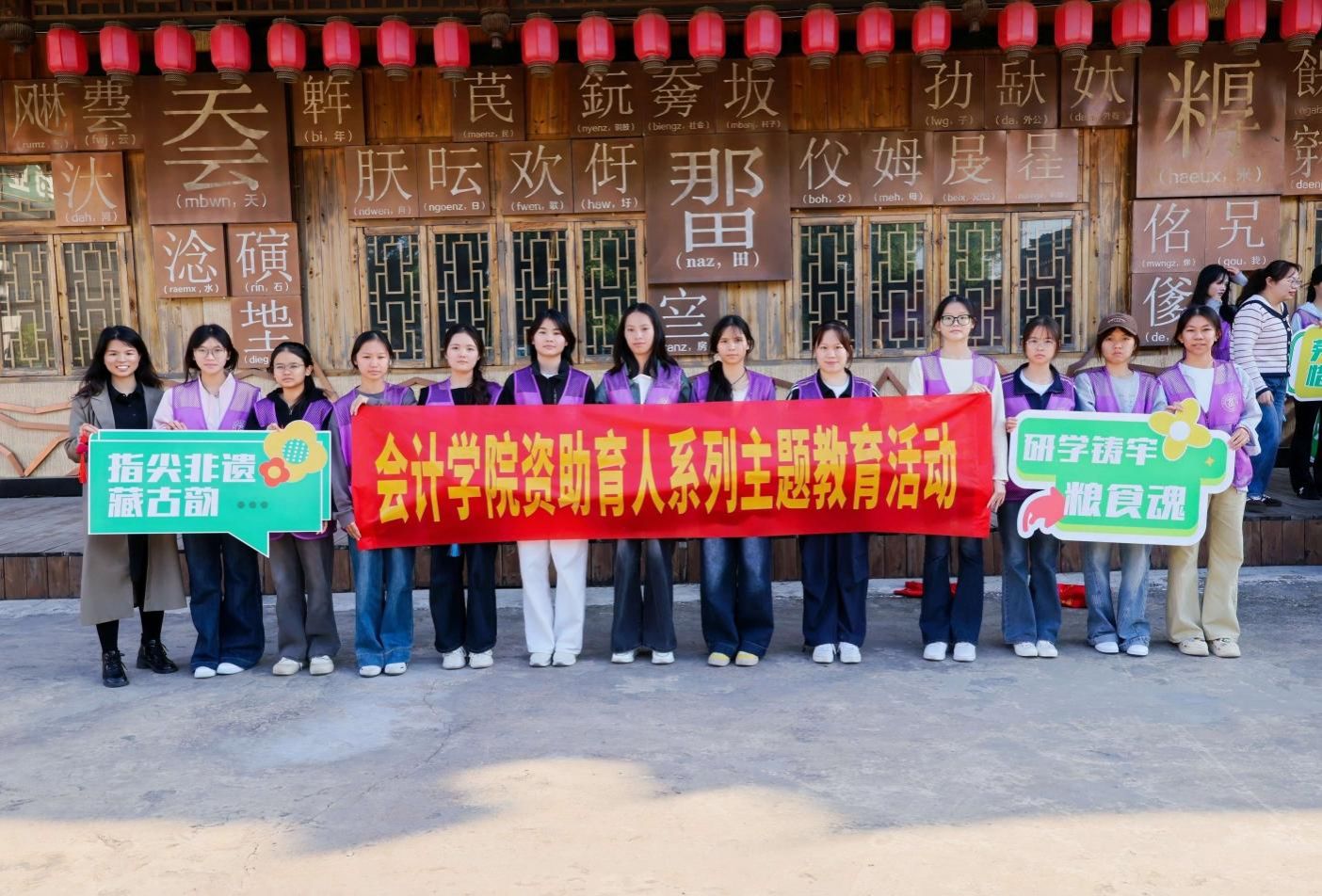 为深化资助育人成效,落实"经济资助与成长赋能"双轨帮扶机制,11月24日下午,会计学院在学校资助中心带领下,由吴小梅老师带队12名受助学生赴广西壮乡民俗文化有限公司(五彩壮乡基地),开展资助育人主题研学活动。