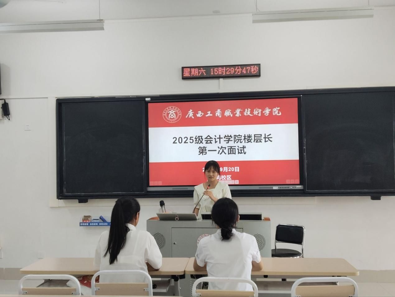 活动开始前,由武鸣校区、中尧校区的总负责人张秋怡、李泳慧分配各位楼层长的工作任务。首先,带领新生们进行候场教室签到;接着,按签到顺序依次进场面试,面试现场采取“自我介绍+问题答辩”形式,全面考察学生的责任意识、沟通能力、问题解决能力及时间管理能力。每一位新生都以饱满的热情和认真的态度参与其中,他们带着对楼层长工作的憧憬与期待,精心准备,力求在有限的时间内展现自己的最佳状态;最后,经过一天的紧张面试,我们深刻感受到了新生们的热情与才华。此次招新不仅为学院宿舍管理工作注入新鲜血液,更搭建起学生自我管理、自我服务、自我成长的实践平台,为打造安全、和谐、温暖的宿舍生活环境奠定坚实基础。