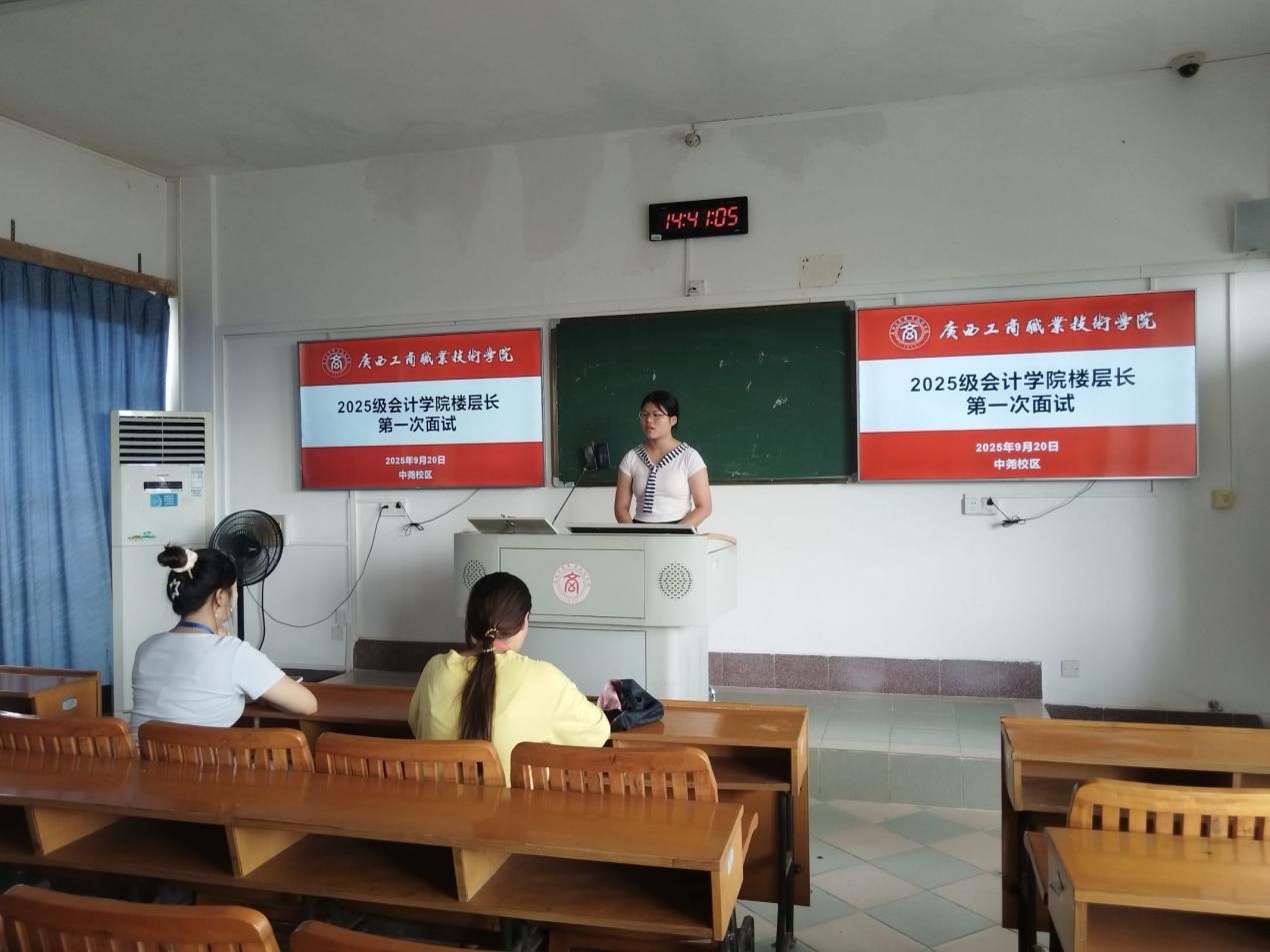 宿舍楼层长是连接学院、宿管部门与学生的重要纽带,承担着“服务者”“协调者”“监督者”三重角色。为进一步完善会计学院宿舍管理体系,提升宿舍生活质量,会计学院楼层长于2025年9月20日下午,分别在武鸣校区、中尧校区教学楼开展2025年招新活动,参加本次活动的有指导老师颜叶青老师、赖如绍老师以及24级全体楼层长。
