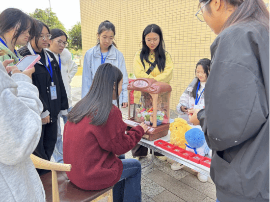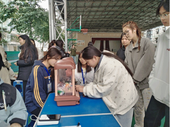 活动现场处处洋溢着喜庆的节日氛围,学院精心设置了“娃娃大作战”“投福纳财”等趣味互动项目,吸引了大批同学驻足参与。志愿者全程在各游戏点位维持秩序,耐心讲解游戏规则,确保活动公平公正地开展。在“娃娃大作战”中,同学们全神贯注操控游戏装置,为抓取心仪玩偶欢呼雀跃。在“投福纳财”的区域,大家排着队轮番投掷,每一次精准投中都引来阵阵喝彩。同学们在轻松欢乐的互动中放下了学业的忙碌,不仅收获了精美小礼品,更增进了同窗之间的情谊,校园里处处回荡着欢声笑语。