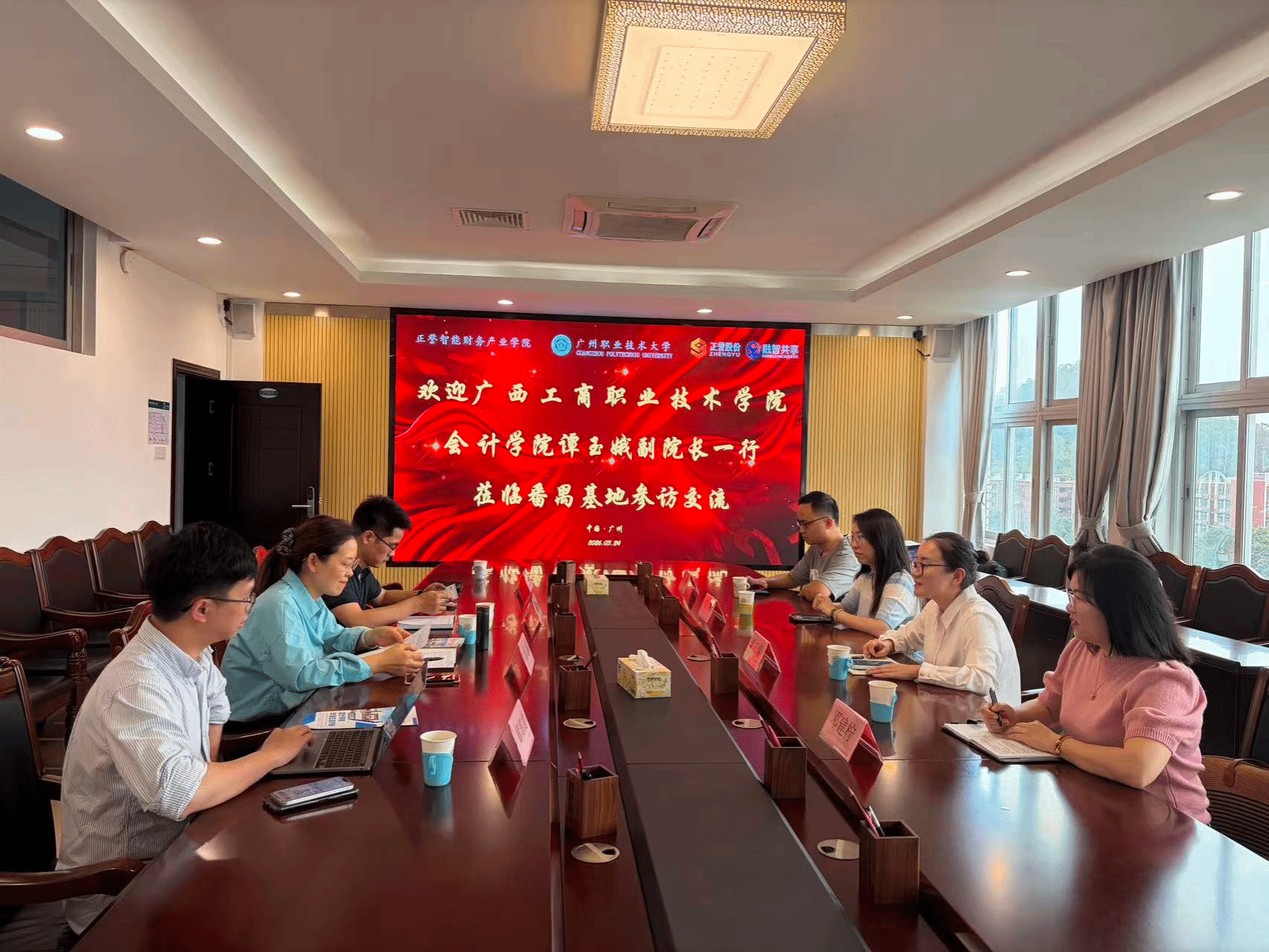 为进一步深化教育教学改革,精准破解产教融合与专业建设方面的痛点、难点,2026年3月25日,广西工商职业技术学院会计学院教学副院长谭玉娥、审税教研室副主任邓建柠、会计教研室副主任刘静、会计信息管理专业带头人童志强前往广州职业技术大学财经学院以及正誉企业管理(广东)集团股份有限公司开展专题调研活动。