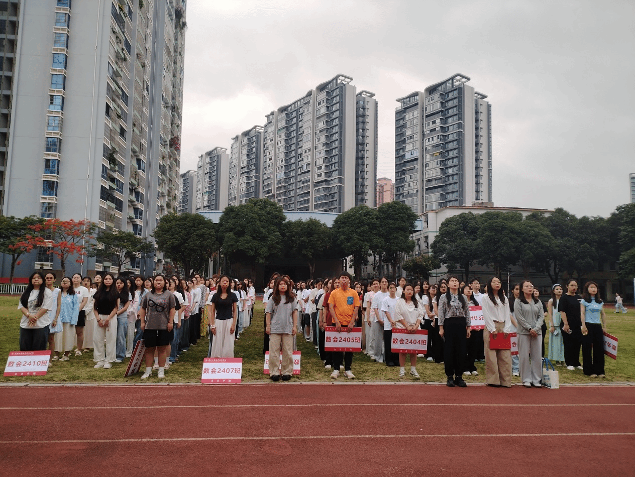 为引导青年学子树立正确劳动观,厚植爱党爱国情怀,会计学院于2026年4月27日在中尧校区足球场举行以“劳动淬炼青春志,丹心向党谱华章”为主题的升旗仪式。本次升旗仪式由会计学院团委文娱部干事陈恒圆主持,出席仪式的有会计学院副院长何丽莹老师与辅导员冯秋钰老师、朱佳鑫老师、陆雪虹老师、覃霞霞老师,以及中尧校区部分在校生。